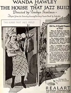 The House That Jazz Built is a 1921 American drama film directed by Penrhyn Stanlaws and written by Douglas Bronston. The film stars Wanda Hawley, Forrest Stanley, Gladys George, Helen Lynch, Clarence Geldart and Helen Dunbar. The film was released in April 1921, by Realart Pictures Corporation.[1][2][3]