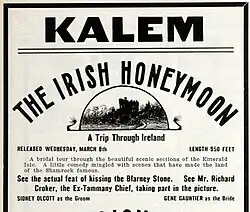The Irish Honeymoon is a 1911 American silent film produced by Kalem Company and distributed by General Film. It was directed by Sidney Olcott with himself and Gene Gauntier in the leading roles.