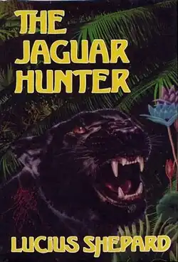 The Jaguar Hunter is a collection of science fiction, fantasy and horror stories by American author Lucius Shepard. Illustrated by J. K. Potter, it was released in May 1987 and was the author's first book published by Arkham House. It was originally published in an edition of 3,194 copies, with a second printing later in 1987 of 1,508 copies. Bantam Books issued a trade paperback edition in 1989, and Four Walls Eight Windows reprinted the collection in 2001. The first British publication came as a Paladin Books trade paperback in 1988, followed quickly by a Kerosina Books hardcover. A Rumanian translation appeared in 2008.[1]