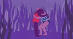 Tuca catches up with Bertie while looking at the setting sun. Bertie remarks on her wish in how she wants to protect the teenagers who are playing in the water from the world and men. Bertie opens up about her experiences, with the style changing into the paper cutout style that Pat's art took the form of.[3] Bertie had wanted to swim to Peanut Butter Island and had trained all summer to do so. On the day of the swim, she had gotten to the dock early before Coach Maple had arrived, and bought a new red swimsuit. She was accompanied by the lifeguard who had praised her for her talent at age 12, and told her he wanted to show her something in the woods. Trusting the adult, she followed him in. Bertie breaks down in tears recounting her story and Tuca comforts her. Tuca declares that Bertie should reclaim the island and make it "Peanut Bertie Island".[2]
