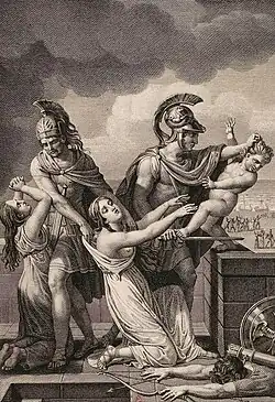 André Félibien noted simply and conclusively that Judgement is admirable for the correction of drawing and the beauty of expressions".[44] In an 1823 collection of works on artists' techniques and of general observations, the French medievalist and curator Alexandre Lenoir devoted a chapter to fathers' and mothers' love,[42] using Andromache, the play of the same name and the mothers in Judgement as examples of the latter: