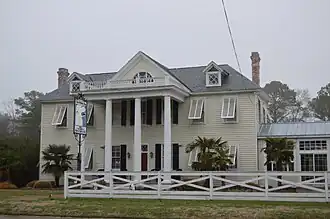 The Lane Hotel, also known as the Hotel Mathews and The White Dog Inn, is a historic inn and tavern located at Mathews, Mathews County, Virginia. It was built about 1840, and is a 2 1/2-story, rectangular frame building with an adjoining kitchen. It features a prominent two-story Greek Revival front porch added in 1916 and a three-part, semi-circular window under the front gable known as a "Billups" Window. Also added in 1916 to the east and west of the original building are two-story square wings. The building was moved back from Grove street an approximate distance of 25 feet in 1916.[3]