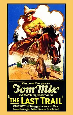 The Last Trail is a 1927 American silent Western film directed by Lewis Seiler and written by John Stone. It is based on the 1909 novel The Last Trail by Zane Grey. The film stars Tom Mix, Carmelita Geraghty, William B. Davidson, Jerry Madden, Frank Hagney and Lee Shumway. The film was released on January 23, 1927, by Fox Film Corporation.[1][2][3]