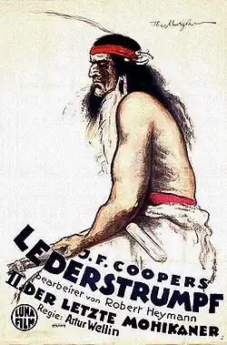 The Last of the Mohicans (German: Der letzte der Mohikaner) is the feature-length second part of the 1920 German silent Western film Lederstrumpf (Leatherstocking) directed by Arthur Wellin and featuring Bela Lugosi and Emil Mamalock. Bela Lugosi played the Indian Chingachgook, one of his most unusual roles, and Emil Mamalock played Hawkeye, the Deerslayer.[1] It is based on James Fenimore Cooper's 1826 novel of the same name. The first part is The Deerslayer and Chingachgook (Der Wildtöter und Chingachgook).