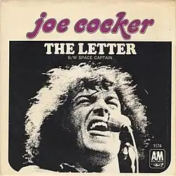 English singer Joe Cocker recorded "The Letter" during the rehearsals for his upcoming American tour on March 17, 1970.[27] Leon Russell and the Shelter People provided the back up; Russell and Denny Cordell produced the recording.[27] A&M Records released it as a single, with "Space Captain" as the B-side. It appeared on the Billboard Hot 100 in April 1970 and eventually reached number seven.[28] "The Letter" became Cocker's first top ten single in the US. In the UK, the single reached number 39.[29]