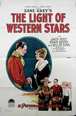The Light of Western Stars is a 1925 American silent Western film directed by William K. Howard and starring Jack Holt, Billie Dove, and Noah Beery. The film was based on a 1914 Zane Grey novel and had been filmed before in 1918.[1]