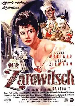 The Little Czar (German: Der Zarewitsch) is a 1954 French-German historical drama film directed by Arthur Maria Rabenalt and starring Luis Mariano, Sonja Ziemann and Iván Petrovich. It is based on the operetta Der Zarewitsch by Franz Lehár.[1] It was shot in Eastmancolor.