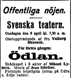 The fact that Sibelius had contributed original music tended to increase any play's box office.[1]