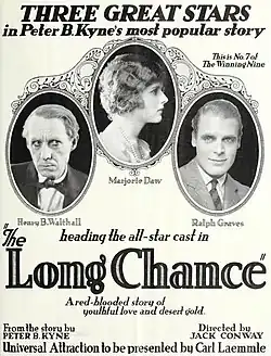 The Long Chance is a 1922 American silent Western film directed by Jack Conway and starring Henry B. Walthall, Marjorie Daw and Ralph Graves.[1]