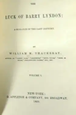 The Luck of Barry Lyndon is a picaresque novel by English author William Makepeace Thackeray, first published as a serial in Fraser's Magazine in 1844, about a member of the Irish gentry trying to become a member of the English aristocracy. Thackeray, who based the novel on the life and exploits of the Anglo-Irish rake and fortune-hunter Andrew Robinson Stoney, later reissued it under the title The Memoirs of Barry Lyndon, Esq. The novel is narrated by Lyndon himself, who functions as a quintessentially unreliable narrator.