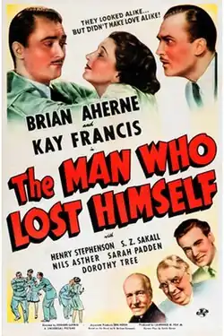 The Man Who Lost Himself is a 1941 American comedy film directed by Edward Ludwig and starring Brian Aherne, Kay Francis and Nils Asther.[1] Aherne plays a man who encounters his exact double and is later mistaken for the other man who is now dead. The film is based on the novel of the same name by Henry De Vere Stacpoole.[2] The novel was also previously adapted to film in 1920. The new version shifts the setting from London of the original to New York, although it features several British actors.