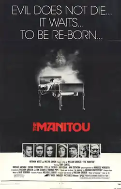 The Manitou is a 1978 American supernatural body horror film produced and directed by William Girdler, and starring Tony Curtis, Michael Ansara, and Susan Strasberg. It follows a woman in San Francisco who begins developing a fast-growing tumor on the back of her neck which is discovered to be supernatural in origin. It is based on the 1976 novel of the same name by Graham Masterton, which was inspired by the concept of manitou in Native American theology, believed to be a spiritual and fundamental life force by members of the Algonquian peoples. The film was Girdler's final feature, as he died in a helicopter accident prior to its release.[4]