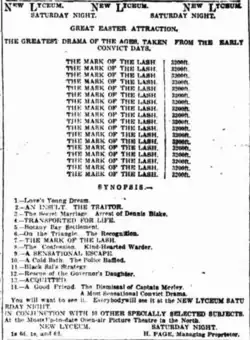The Mark of the Lash is a 1911 Australian silent film. It is a convict-era melodrama made by the husband-and-wife team of John and Agnes Gavin.[4]