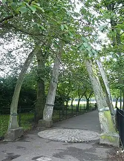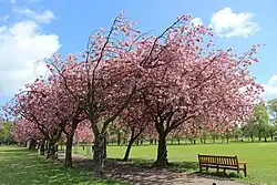 The Meadows remains noteworthy for its mature elms, though Dutch elm disease has taken a gradual toll over the years. Most of the survivors (2019) are wych elm and Huntingdon Elm,[27] but there are also specimens of the variable Field Elm. Some replanting with disease-resistant hybrids like Ulmus 'Regal' and Ulmus 'Columella' has begun.[28]