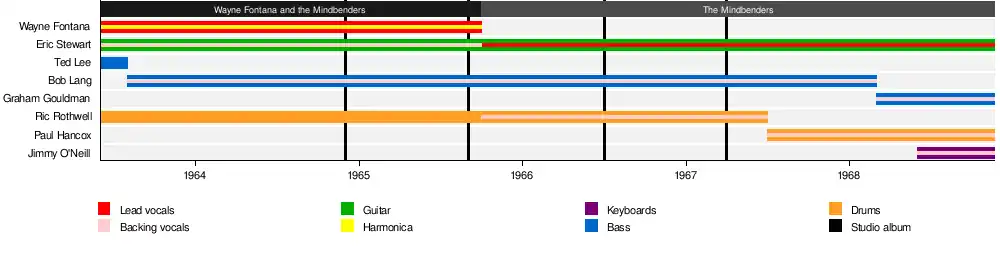 - Wayne Fontana (born Glyn Geoffrey Ellis, 28 October 1945, Levenshulme, Manchester Lancashire,[3] died 6 August 2020) – vocals, tambourine (1963–1965)