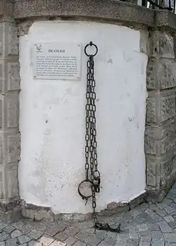 The Ettal Monastery was founded in 1330 and received a written code of life in 1332 with the Ettal Rule, which was written in German and defined everyday life in the monastery. In addition to priests and monks, 13 knights and their wives were to live in the monastery.[46] If a knight died, his wife was allowed to remain in the monastery until her death.[47] The knights and their wives were allowed to go hunting and gamble, but not for money. Dancing and excessive consumption of alcohol were also forbidden,[48] children were not allowed to be brought into the monastery; children born in the monastery had to leave Ettal after the age of three. Clothing was to be simple and color-coded.[49] Knights were not allowed to have their own horses, but could borrow horses from the monastery's master.