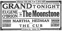The Moonstone is a 1915 silent film directed by Frank Hall Crane. The film stars Eugene O'Brien as Franklin Blake, Elaine Hammerstein as Rachel Verinder, Ruth Findlay as Rosanna Spearman, among others.[1][2]