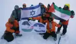 When they arrived in Antarctica, the team trekked for a week until they reached the foot of the mountain. In a high wind and low visibility, in terrain with many crevasses, they started their climb. Roped together in mixed groups of four, using crampons attached to their boots and ice axes in their hands, the Israelis and Palestinians took responsibility for each other's lives. Climbing over a glacier, they reached the summit at 4 p.m. on January 16, 2004.[1]