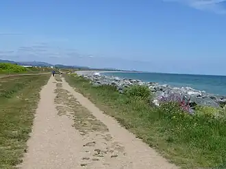 ![]() Path along the shingle ridge on the seaward side of the Murrough Wetlands | |