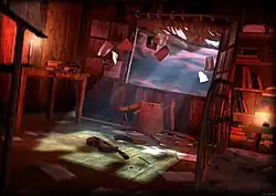 An artist's depiction of Zann's room