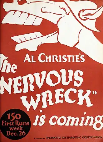 The Nervous Wreck is a 1926 American silent comedy adventure film directed by Scott Sidney and starring Harrison Ford, Phyllis Haver and Chester Conklin.[1] It is based on the play The Nervous Wreck by Owen Davis, inspired by an earlier story The Wreck by E.J. Rath. The play later became a musical on which the 1930 film Whoopee! was based and also inspired the 1944 film Up in Arms.