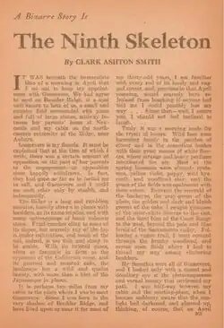 "The Ninth Skeleton" is a short story by American writer Clark Ashton Smith. It was first published in the September 1928 issue of Weird Tales.[1] It was his first story for Weird Tales.[2]