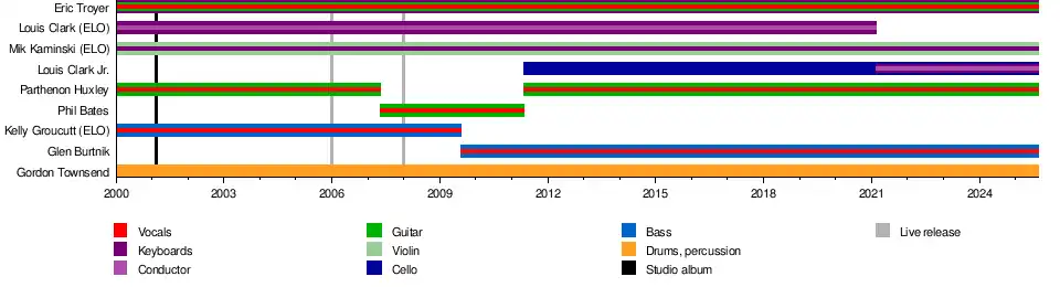 • Eric Troyer – keyboards, vocals, guitar (2000–present) (from ELO Part II)