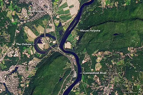 The Oxbow, also known as the Ox-Bow, is an extension of the Connecticut River located in Northampton, Massachusetts. It was famously depicted in Thomas Cole's 1836 painting View from Mount Holyoke, Northampton, Massachusetts, after a Thunderstorm—The Oxbow.[1]