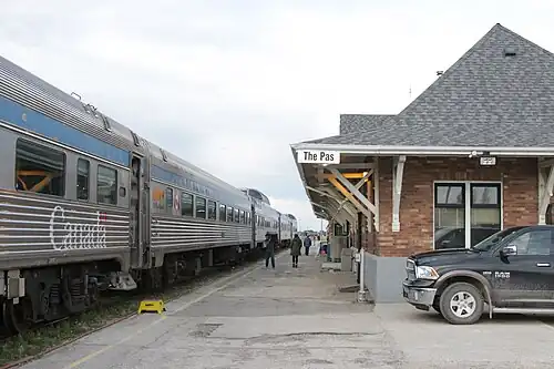 2. ^ "Via Rail/Canadian National Railways Station 380 Hazlewood Ave., The Pas, Manitoba, R9A, Canada". Canada's Historic Places - a Federal Provincial and Territorial Collaboration. Retrieved February 7, 2011.