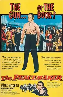 The Peacemaker is a 1956 American Western film directed by Ted Post and starring James Mitchell and Rosemarie Bowe. Hal Richards based the script on the novel of the same name by Richard Poole.