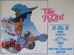 The Pied Piper is a 1972 British musical fantasy film directed by Jacques Demy and starring Jack Wild, Donald Pleasence and John Hurt and featuring Donovan (who also composed music for the film) and Diana Dors.[2] It is loosely based on the legend of the Pied Piper.[3]