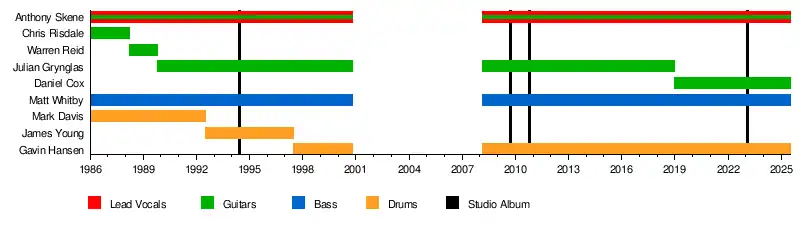 • Anthony "Skenie" Skene – vocals, guitars (1986–2000, 2008–present)