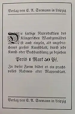 - ^ Paul Schumann: Max Klingers Wandgemälde für die Aula der Universität Leipzig, Leipzig 1909.