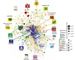 The Product Space is a network that formalizes the idea of relatedness between products traded in the global economy. The network first appeared in the July 2007 issue of Science in the article "The Product Space Conditions the Development of Nations,"[1] written by Cesar A. Hidalgo, Bailey Klinger, Ricardo Hausmann, and Albert-László Barabási. The Product Space network has considerable implications for economic policy, as its structure helps elucidate why some countries undergo steady economic growth while others become stagnant and are unable to develop. The concept has been further developed and extended by The Observatory of Economic Complexity, through visualizations such as the Product Exports Treemaps and new indexes such as the Economic Complexity Index (ECI), which have been condensed into the Atlas of Economic Complexity.[2] From the new analytic tools developed, Hausmann, Hidalgo and their team have been able to elaborate predictions of future economic growth.