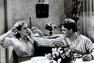 The Public Enemy (Enemies of the Public in the UK)[6] is a 1931 American pre-Code gangster film produced and distributed by Warner Bros. The film was directed by William A. Wellman, and starring James Cagney, Jean Harlow, Edward Woods, Donald Cook and Joan Blondell. The film relates the story of a young man's rise in the criminal underworld in Prohibition-era urban America. The supporting players include Beryl Mercer, Murray Kinnell, and Mae Clarke. The screenplay is based on an unpublished novel—Beer and Blood by two former newspapermen, John Bright and Kubec Glasmon—who had witnessed some of Al Capone's murderous gang rivalries in Chicago.[7][8]