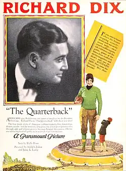 The Quarterback is a 1926 American silent comedy film directed by Fred C. Newmeyer and written by William Slavens McNutt, W. O. McGeehan, and Ray Harris. The film stars Richard Dix, Esther Ralston, Harry Beresford, David Butler, Robert W. Craig, and Mona Palma. The film was released on October 11, 1926, by Paramount Pictures.[1][2]