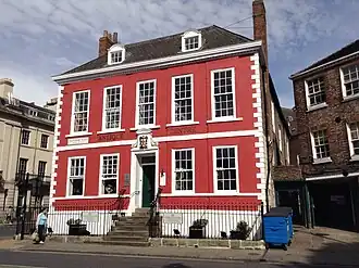 The house lies on Duncombe Place, on the corner of St Leonard's Place. Its site is believed to be that of the east gate of St Leonard's Hospital. This was later replaced by a house which formed part of Mint Yard, which was purchased by the York Corporation in 1675. In 1701, that house was leased by Sir William Robinson, MP for York, and in about 1714 he rebuilt the house, retaining only the basement and ground floor walls at each side. William Etty designed another house for Robinson, and he is sometimes claimed to have also designed The Red House.[1][2][3]