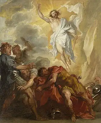 The Resurrection is an oil on canvas painting completed in 1631 - 1632 by Anthony van Dyck, now in the Wadsworth Atheneum, in Hartford, Connecticut. Experts date the painting to Van Dyck's second Antwerp period, around 1627‐32.[1]