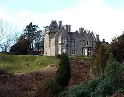 It was built in Scottish Baronial style for B. H. Bent by E. G. Paley in 1857–60, the only building designed in this style by Paley.[2] It is built of squared rubble with sandstone ashlar dressings and a slate roof. The frontage has three bays in two storeys and incorporates a short two-stage tower at the left.[1]
