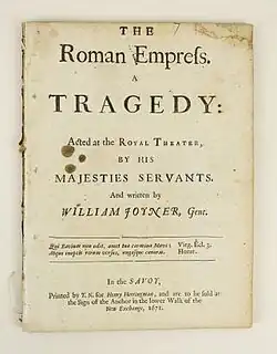 • Joyner, William. The Roman Empress, a Tragedy, Printed by T.N. for Henry Harrington, 1671