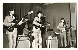 In New Zealand in the early 1960s, Cliff Richard and the Shadows, Buddy Holly and the Crickets and Elvis Presley were soon to be replaced in the national psyche of the new teen generation by the Beatles, the Rolling Stones and the rest of the British Pop Invasion. An awakening was underway in the new generation with this heightened level of interest in music. Bands sprang up in every town, at every school from church groups to scout clubs. In the small Waikato town of Huntly, twin brothers John (Shade) and Gerard Smith teamed up with their schoolmates and neighbours Jacques Koolen and Ross Hindman and formed a singing group which won a talent quest at Huntly College in 1962. Not long after, they became a Shadows-emulating band called The Sapphires and began performing at local and district functions, frequently in Hamilton at the Starlight Ballroom, the Waikato's entertainment mecca.[3] Changing their name to the Surfires and moving to Auckland they recorded 3 singles on the Zodiac label at Stebbing's Recording Studio during 1966/67 "I Can't Wait For Summertime"/"Flying Saucers",[4] "Friction"/"A True Gentleman" [5] and "Notice Me"/"When Will The Seasons Bring".[6] All songs were written by lead guitarist John Smith with Gerard Smith taking care of the vocals and rhythm guitar, Hindman on bass and Koolen on drums.