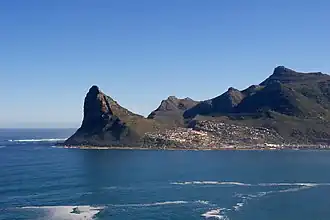 The Sentinel or Hangberg is a peak marking the western end of the mouth of Hout Bay in South Africa. It has a sheer cliff dropping towards the sea, and a coastal hiking path is accessible at low tide. It is adjacent to Hout Bay Harbour and the Hangberg settlement, and to the higher Karbonkelberg peak. Just offshore to the south is a colony of Cape fur seals known as Seal Island, and a big wave surf spot known as "Dungeons", which has hosted the Red Bull Big Wave Africa competition.[1]