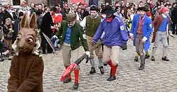 Hans Wilhelm Kirchhof was the first to write it down in his book Wendemut (1563).[2] Eucharius Eyring wrote it down as a poem in "Proverbiorum Copia" (1601–1604). Ludwig Aurbacher also wrote down a well known version in "Ein Volksbüchlein" (1827–1829) [3] and gave the seven protagonists names: Allgäuer, Seehas, Nestelschwaub, Blitzschwaub, Spiegelschwaub, Gelbfüssler and Knöpfleschwaub.