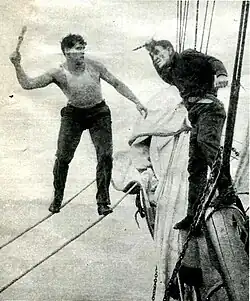 Shark Rawley is a sailor on a tramp steamer who saves a woman by the name of Doris Hall from the crew of the ship and its captain Sanchez. His adventures lead to the ship burning when a fire breaks out. Rawley and Hall escape and while waiting for the rescue boat they fall in love with each other.[3]