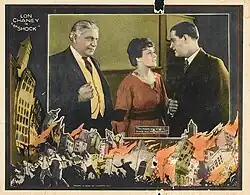 The Shock is a 1923 American silent drama film (a Universal Jewel) directed by Lambert Hillyer and starring Lon Chaney as a disabled man named Wilse Dilling.[1] The film was written by Arthur Statter and Charles Kenyon, based on a magazine story by William Dudley Pelley. This is one of the rare Lon Chaney films in which his character ends up with the female "love interest." The film is readily available on DVD.[2]