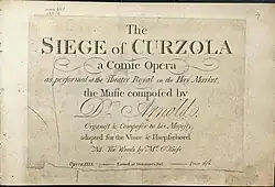 The Siege of Curzola is a 1786 comic opera with music by Samuel Arnold and a libretto by the Irish writer John O'Keeffe. It is set in 1571 during the Ottoman siege of Curzola at the time of the Battle of Lepanto.[1]