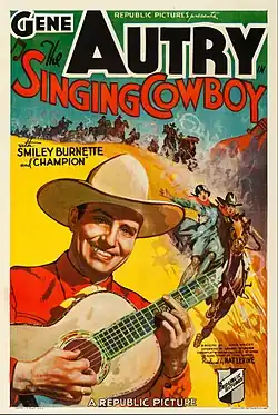 The Singing Cowboy is a 1936 American Western film directed by Mack V. Wright and starring Gene Autry, Smiley Burnette, Lois Wilde and Lon Chaney Jr. Based on a story by Tom Gibson, the film is about a cowboy who decides to sing on television in order to raise money for the orphaned daughter of his former boss who was murdered.[1]