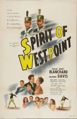 The Spirit of West Point is a 1947 American sports drama film directed by Ralph Murphy and written by Tom Reed. The film stars Doc Blanchard, Glenn Davis, Robert Shayne, Anne Nagel, Alan Hale Jr., George O'Hanlon, Michael Browne and Tanis Chandler. The film was released on October 4, 1947, by Film Classics.[1][2][3]