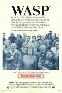 The Sporting Club is a 1971 American comedy film directed by Larry Peerce and written by Lorenzo Semple Jr. It is based the 1968 novel The Sporting Club by Thomas McGuane. The film stars Robert Fields, Nicolas Coster, Maggie Blye, Jack Warden, Richard Dysart and William Roerick. The film was released on February 28, 1971, by Avco Embassy Pictures.[1][2][3]