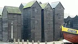 The sheds were originally built on posts to allow the sea to go underneath, however more shingle has built up and the sea does not reach the huts anymore. The beach area, on which the Sheds stand, built up after groynes were erected in 1834, however the limited space meant the sheds had to grow upwards, even though some sheds do have cellars.